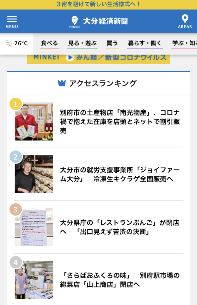 大分経済新聞アクセスランキング2位獲得