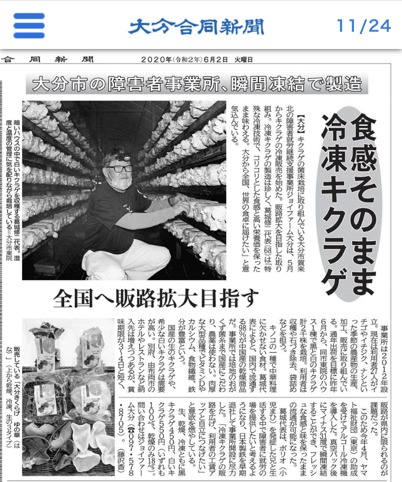 主力商品として生産を始めた「白いキクラゲ」の認知を獲得したい。また、白いキクラゲのために導入した瞬間冷凍機で鮮度を保ったまま凍らした「瞬間冷凍生キクラゲ」の認知と商品の信頼を獲得したい。